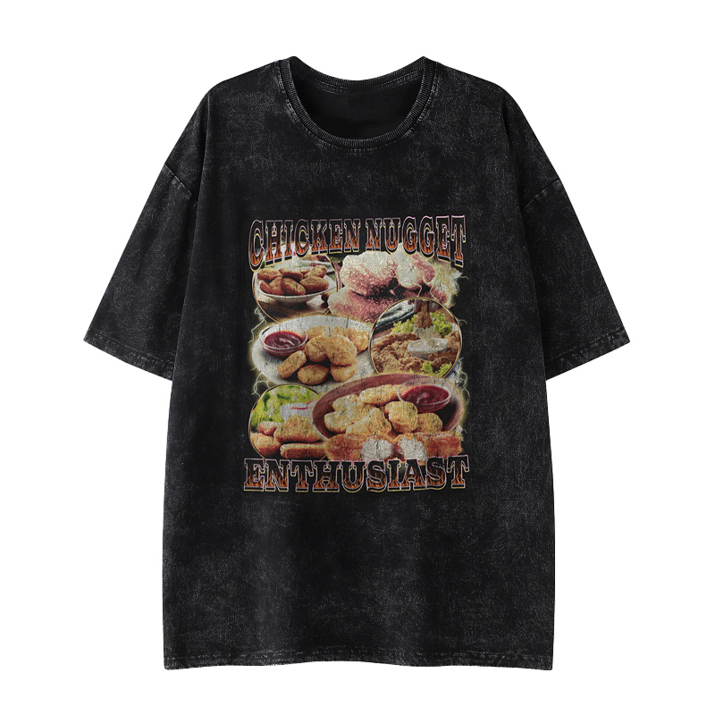 Chicken Nugget Enthusiast Print Acid Washed T-shirt