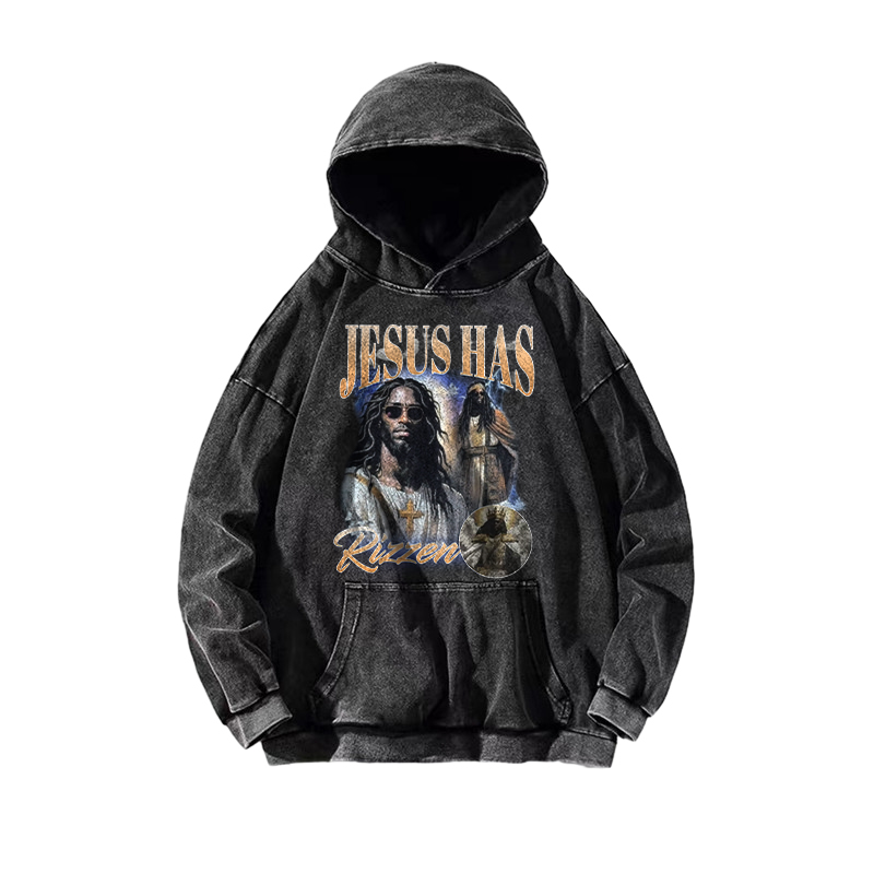Jesus Has Rizzen Printed Washed Hoodie