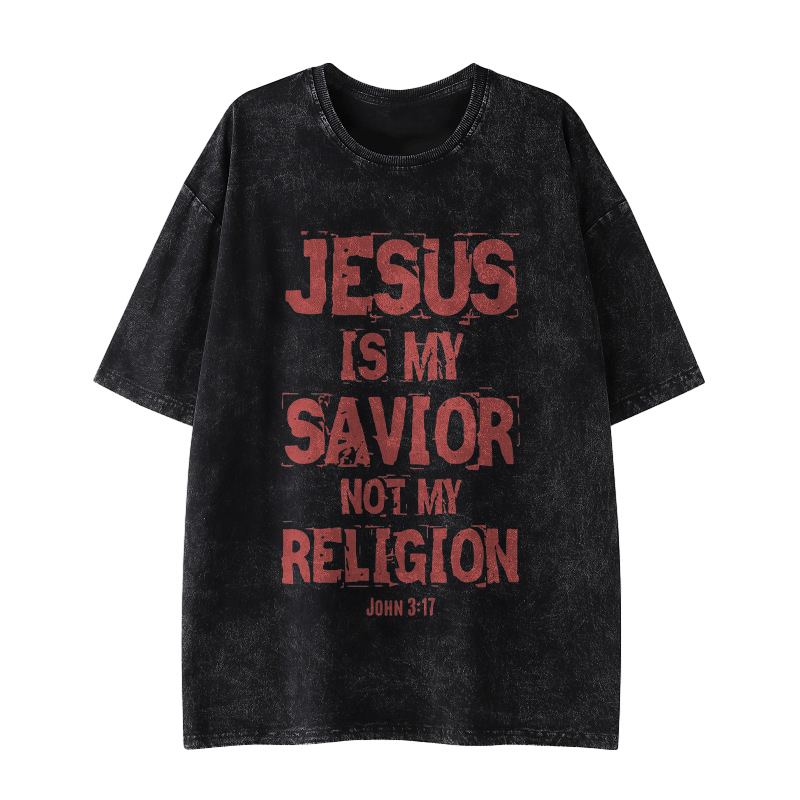 Jesus Is My Savior Not My Religion Print Washed T-shirt