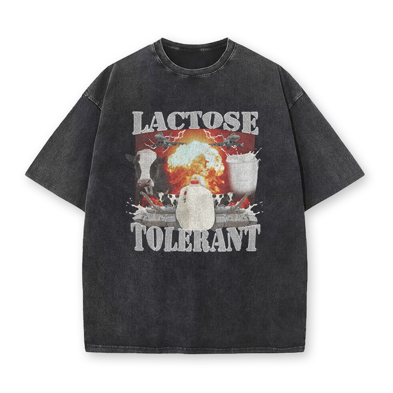 Vintage Heavyweight Streetwear Lactose Tolerant Printed Acid Washed T-shirt