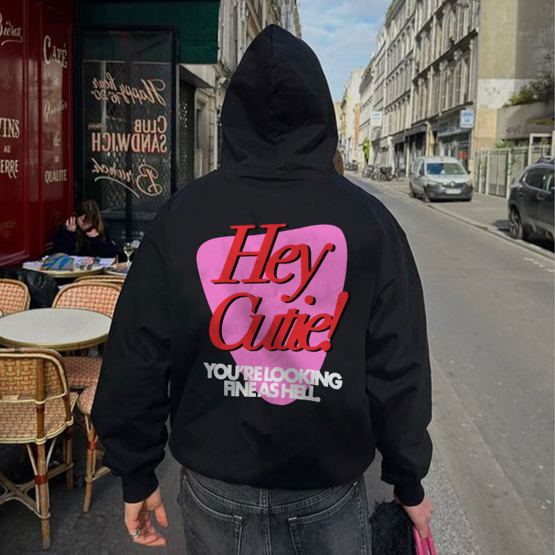 Hey Cuitie You're Looking Fine As Hell Print Hoodie