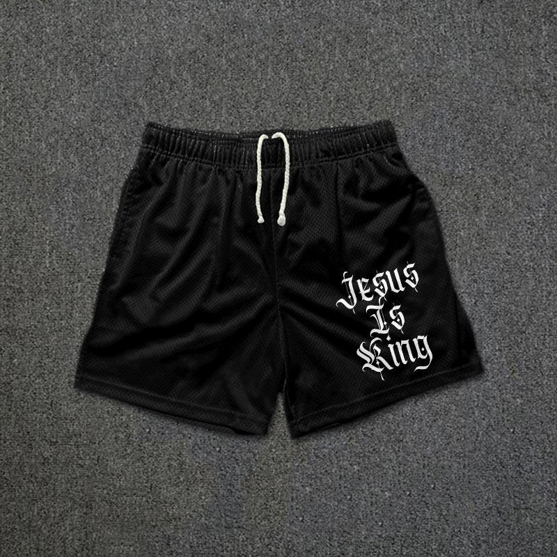 Jesus Is King Print Mesh Shorts