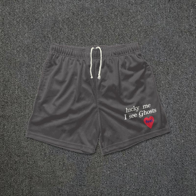 Lucky Me I See Ghosts Print Mesh Shorts