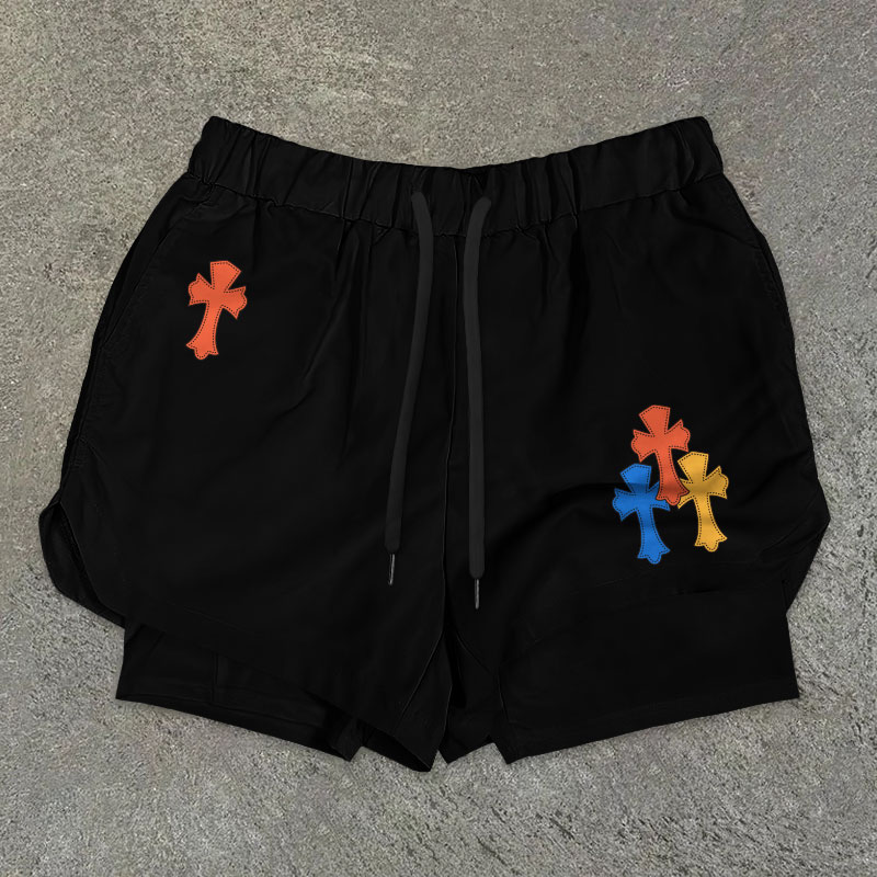 Casual Multicolor Cross Print Double Layer Shorts