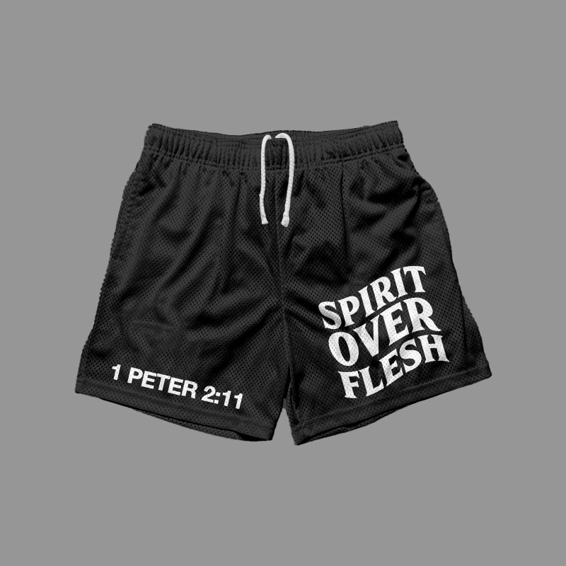 Spirit Over Flesh Print Mesh Shorts