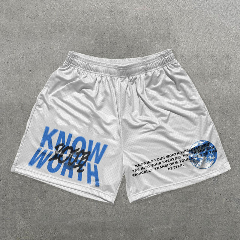 Know Your Worth Print Mesh Shorts