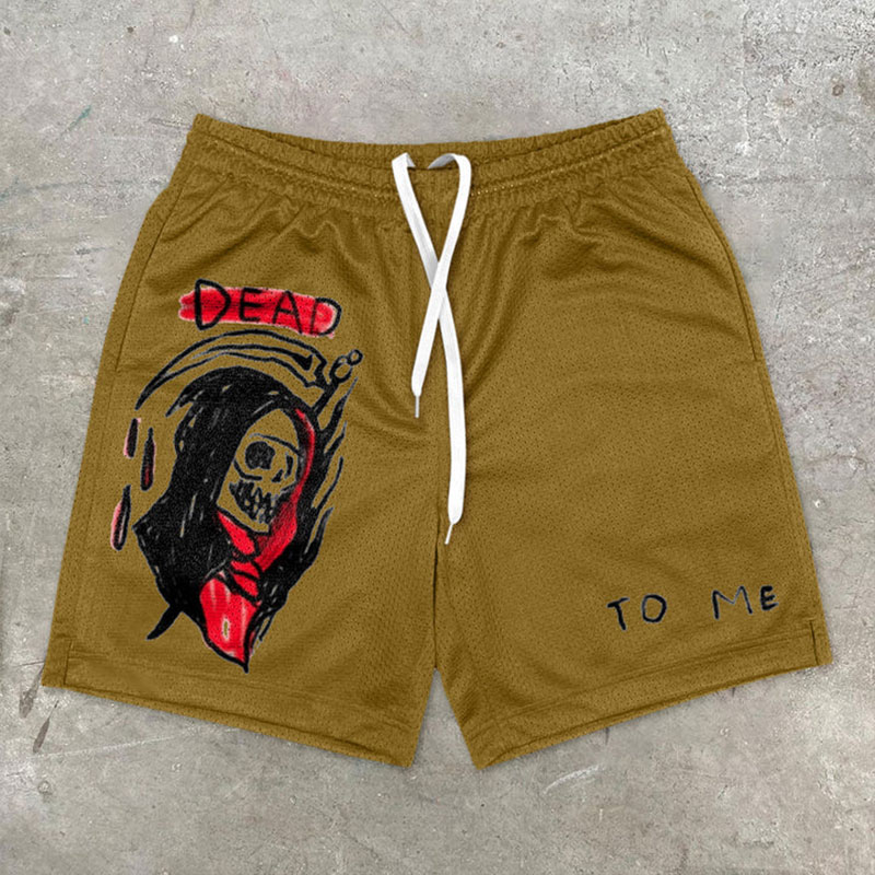 Grim Reaper Print Mesh Shorts