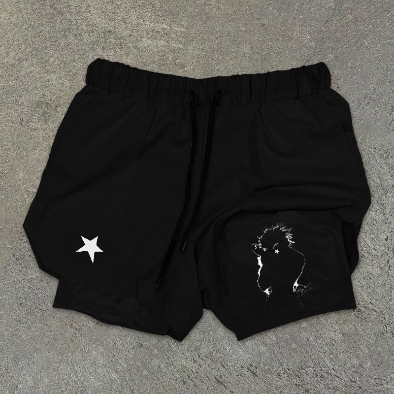 Men's The World Over Heaven Sketch Print Double Layer Shorts
