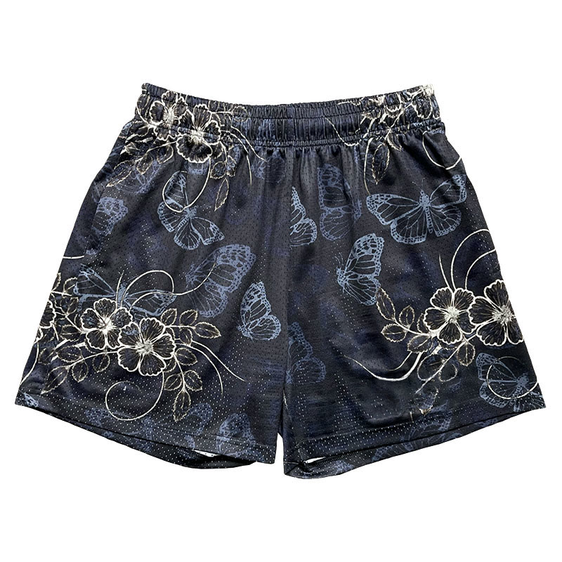 Butterfly Floral Print Mesh Shorts