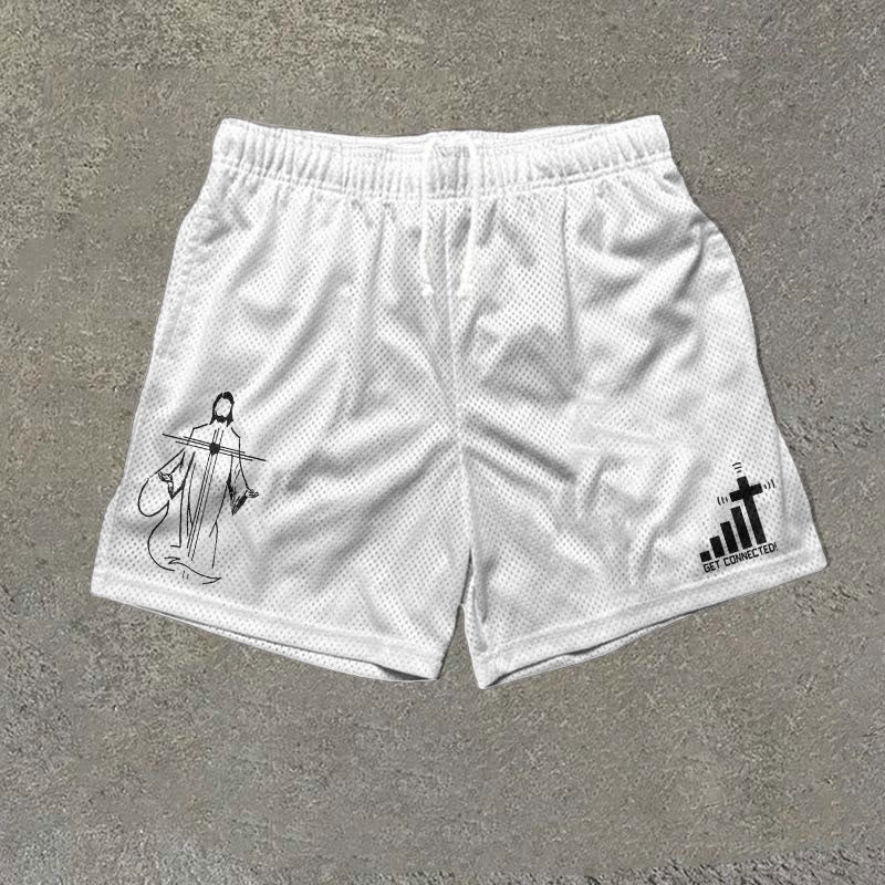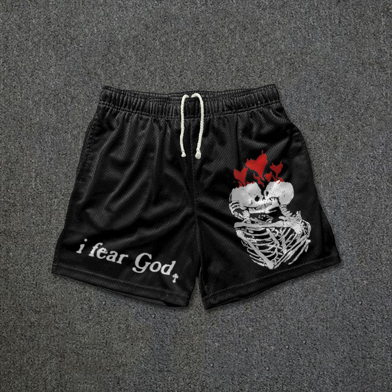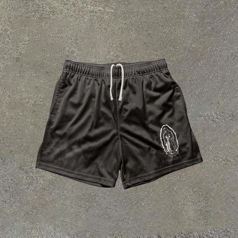 As Long As I Am Here,You Do Not Need To Fear My Child Print Mesh Shorts