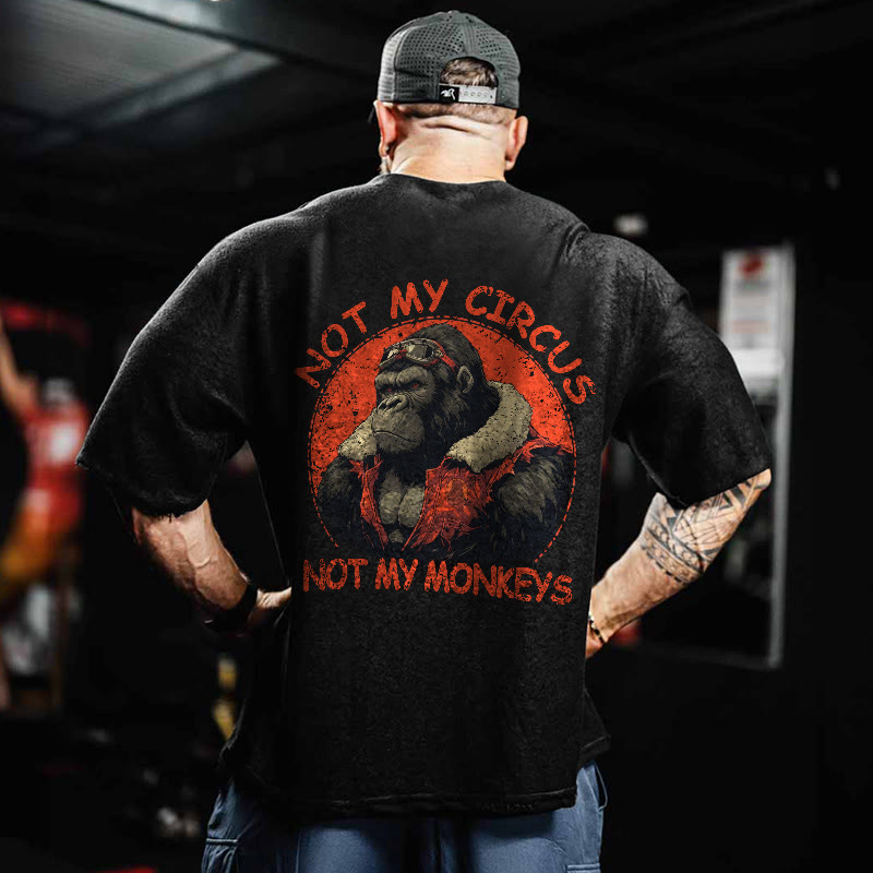 100% Cotton Not My Circus Not My Monkeys Gym Print Acid Washed T-shirt