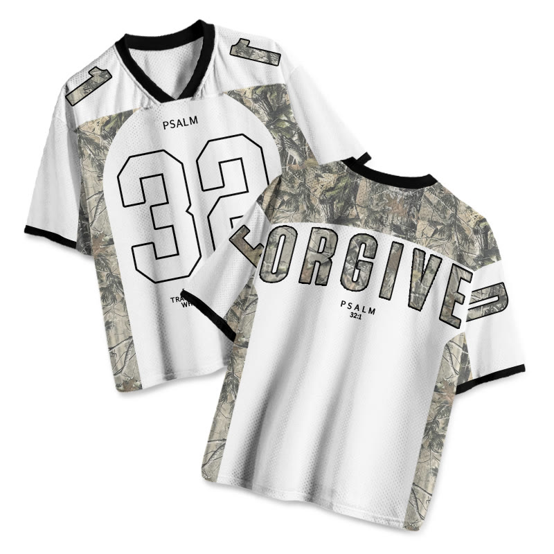 Psalm 32:1 Forgiven Dead Leaves Camouflage Print Mesh Jersey