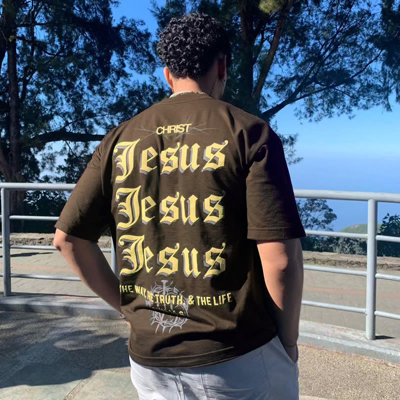Unisex Jesus Loyal Servant Print Acid Washed T-shirt