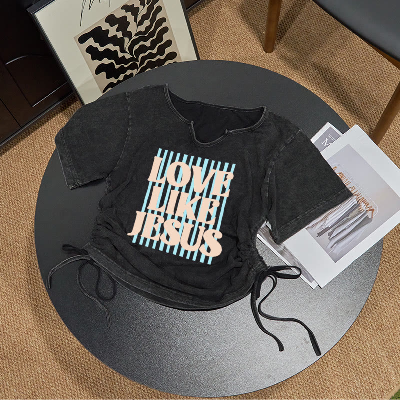 Love Like Jesus Print Acid Washed Drawstring T-shirt