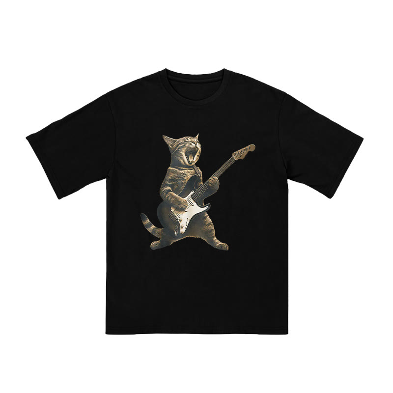 Unisex Rock Cat Playing Guitar Print T-shirt