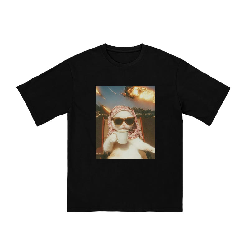 Unisex Cat Making Funny Faces Print Acid Washed T-shirt