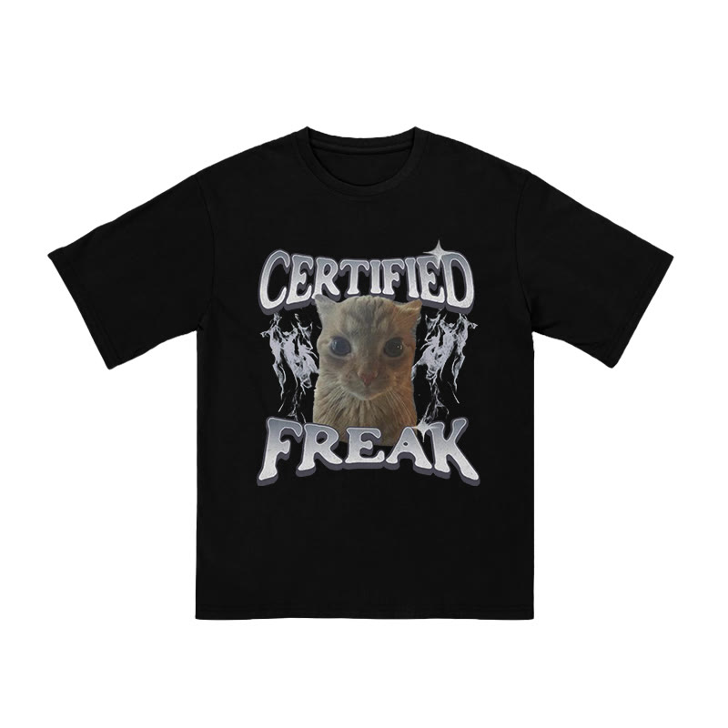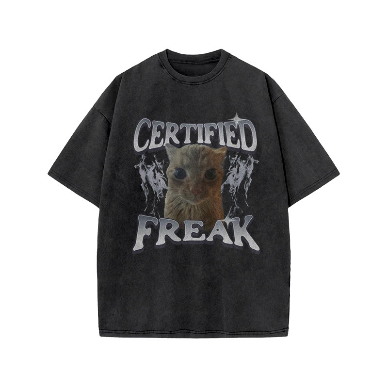 Unisex Certified Freak Funny Cat Print Acid Washed T-shirt