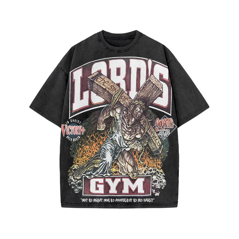 Unisex Lord's Gym Print Acid Washed T-shirt