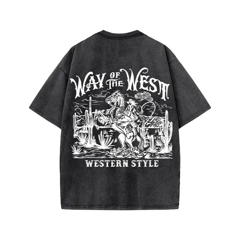Unisex WAY OF THE WEST Print Acid Washed T-shirt