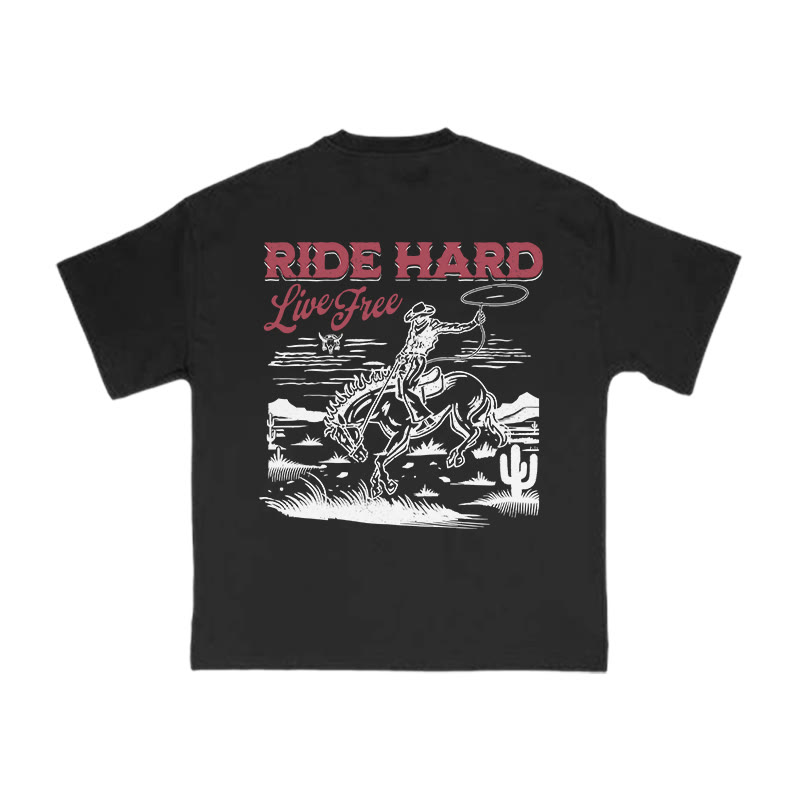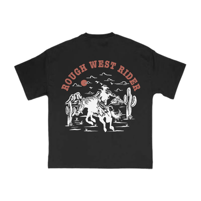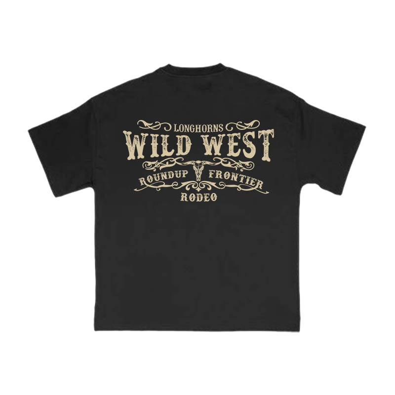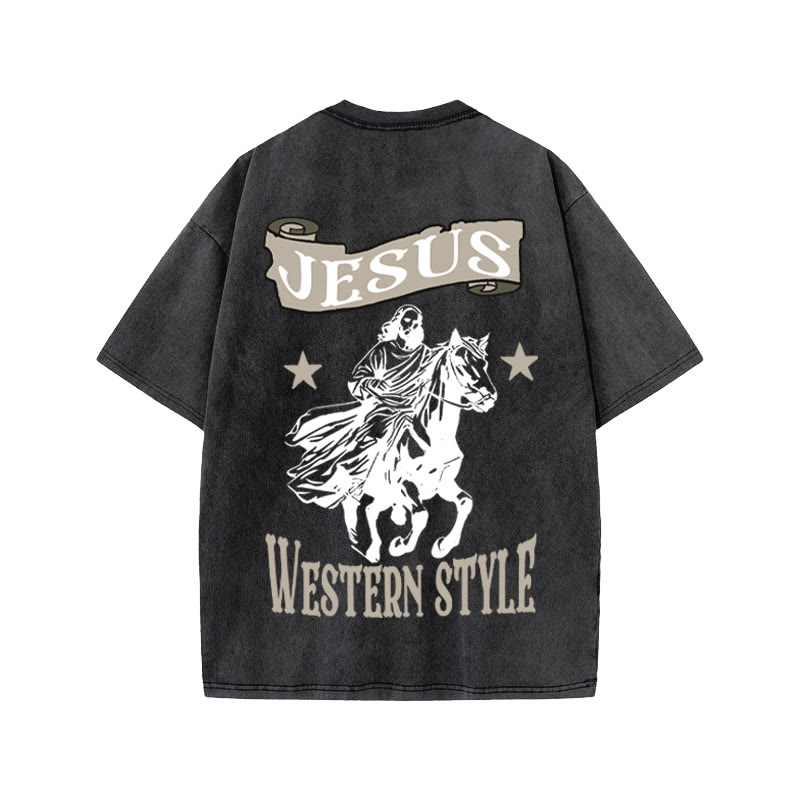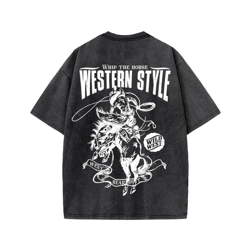 Unisex COWBOYS Western Style Print Acid Washed T-shirt