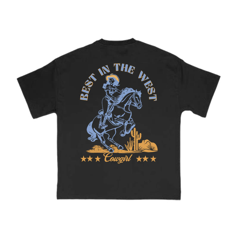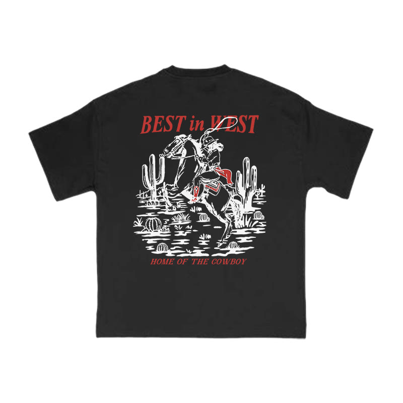 Unisex BEST IN WEST Western Style Print Acid Washed T-shirt