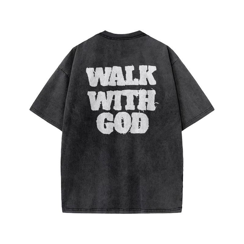 Unisex Walk With God Creative Print Acid Washed T-shirt