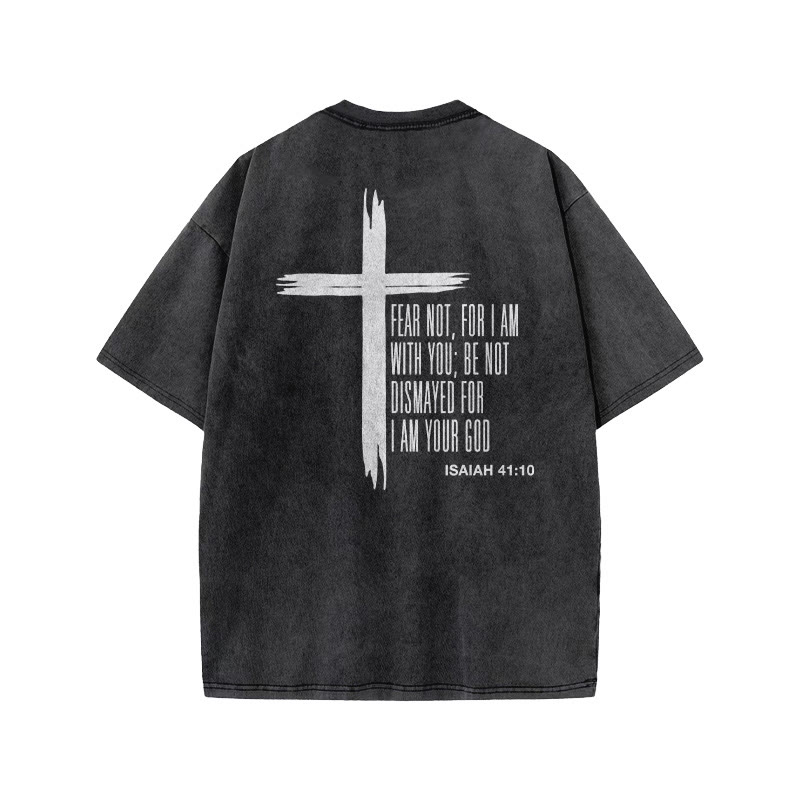 Unisex Isaiah 41:10 Cross Print Acid Washed T-shirt