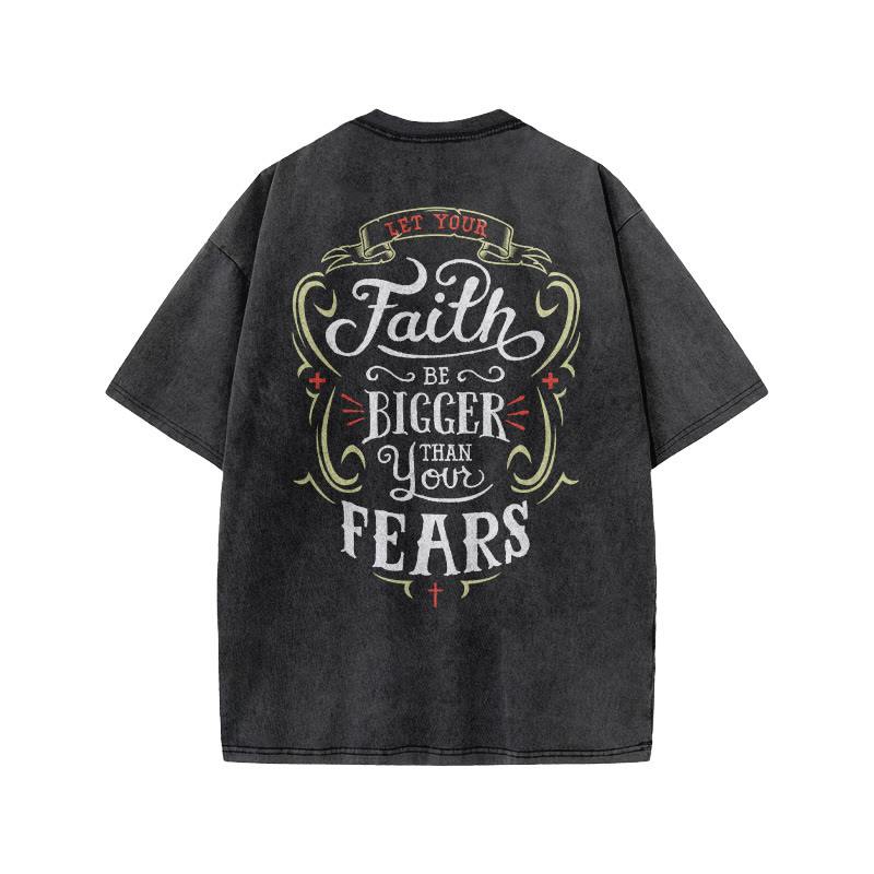 Unisex Let Your Faith Be Bigger Than Your Fears Print Acid Washed T-shirt
