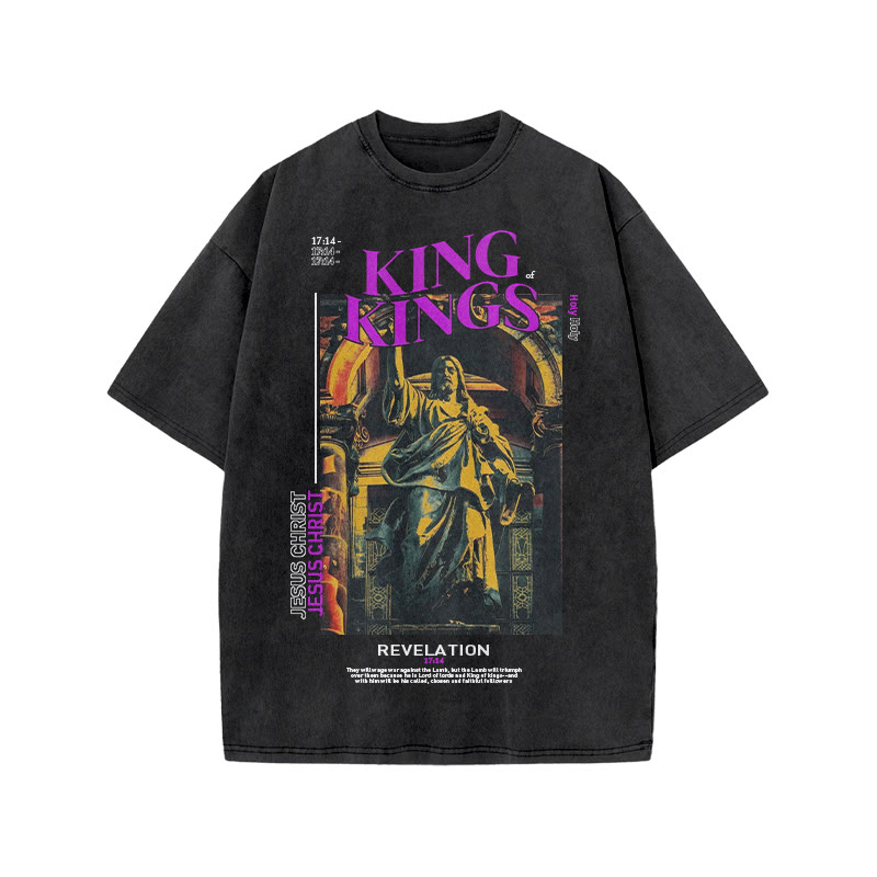 Unisex King Of Kings Print Acid Washed T-shirt