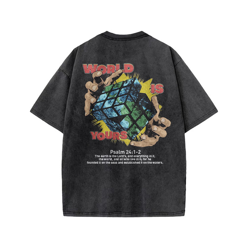 Unisex World Is Yours Print Acid Washed T-shirt