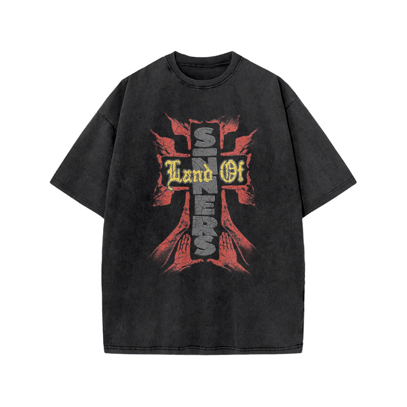 Unisex Lord Of Sinners Print Acid Washed T-shirt