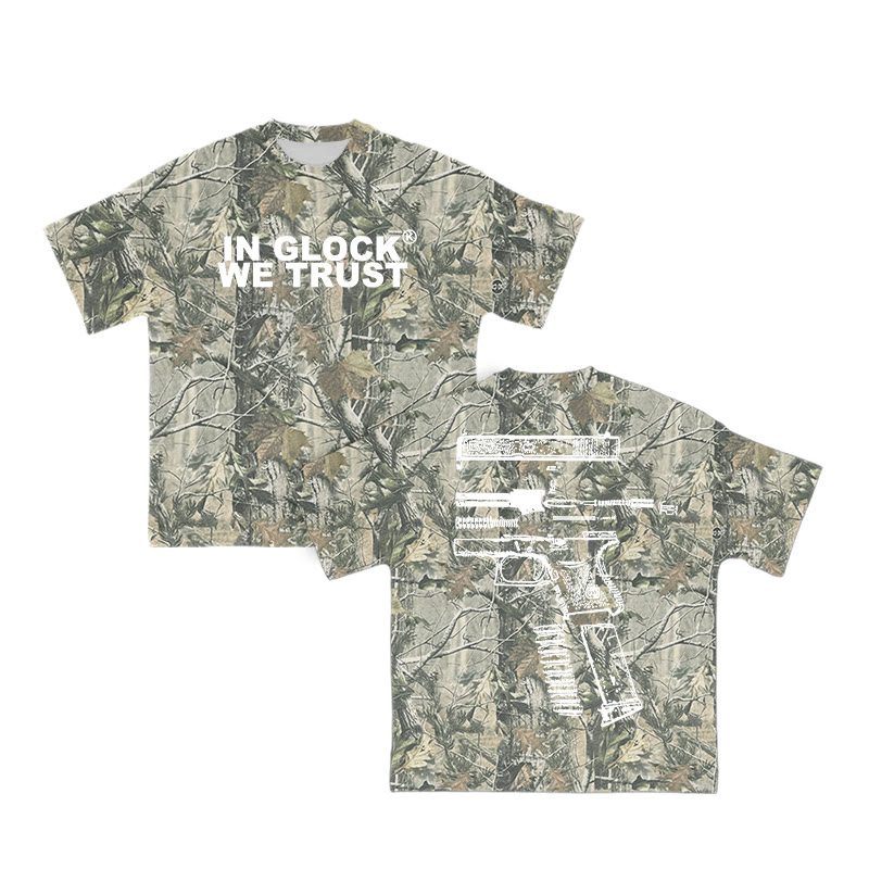 Unisex In Glock We Trust Dead Leaves Camouflage Print Short-sleeved T-shirt