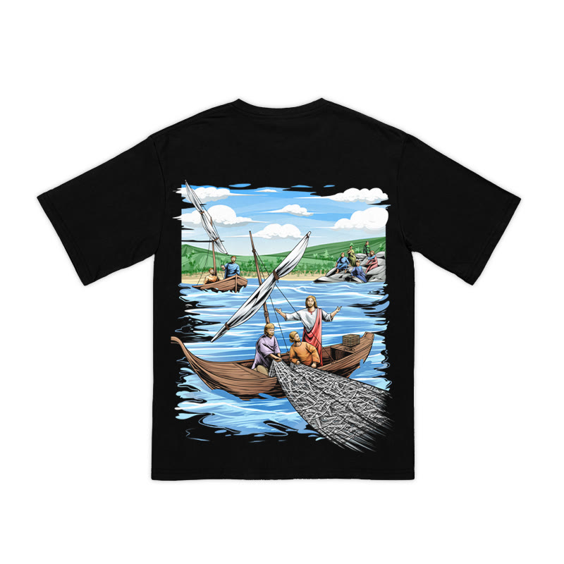 Unisex The Miraculous Catch Of Fish Print T-shirt