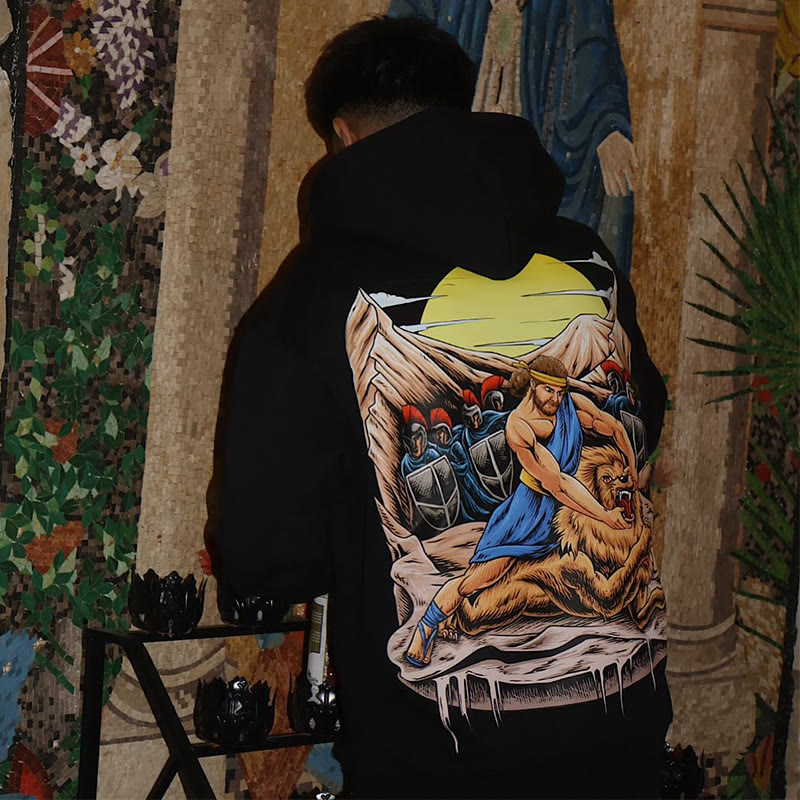 Unisex Samson And The Lion Print Hoodie