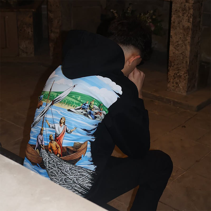 Unisex The Miraculous Catch Of Fish Print Hoodie