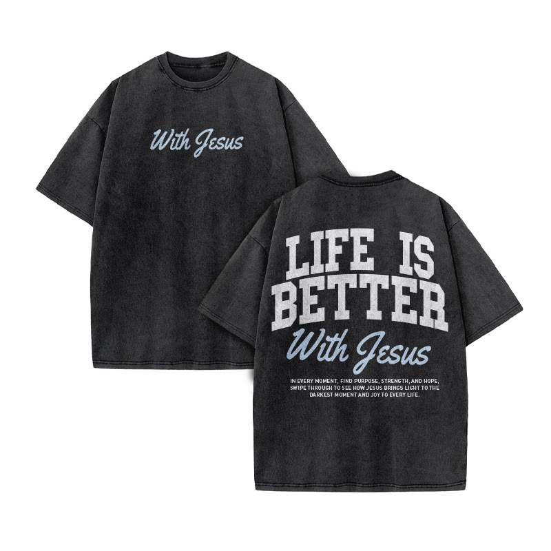 Unisex Life Is Better With Jesus Print Acid Washed T-shirt