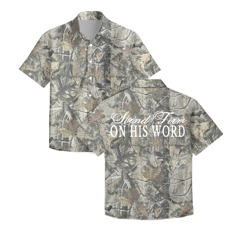 Unisex Stand Firm On His Word Dead Leaves Camouflage Print Short Sleeve Shirt
