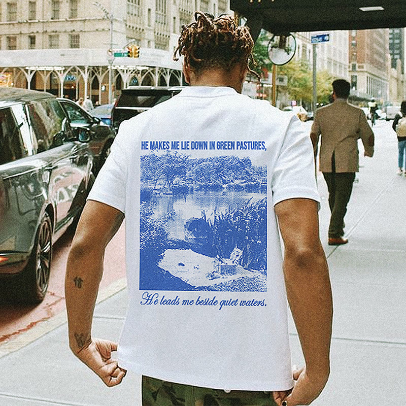 Unisex He Leads Me Beside Quiet Waters Print T-shirt