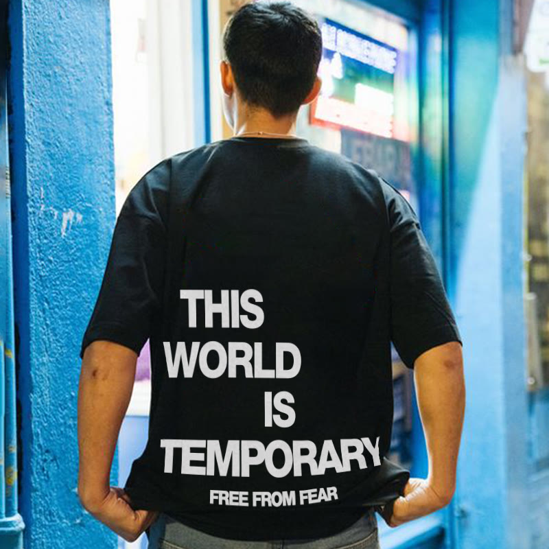 Unisex This World Is Temporary Free From Fear Print T-shirt