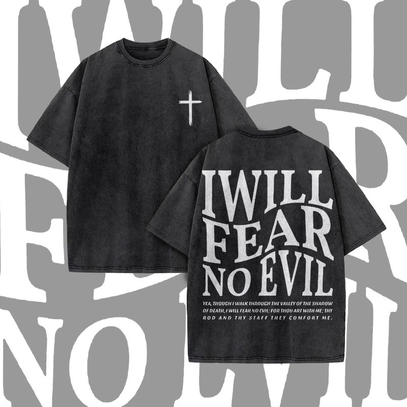 Unisex I Will Fear No Evil Print Acid Washed T-shirt