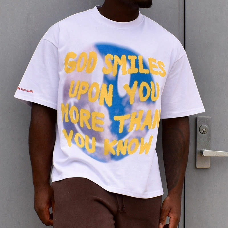 Unisex God Smiles Upon You More Than You Know Print T-shirt