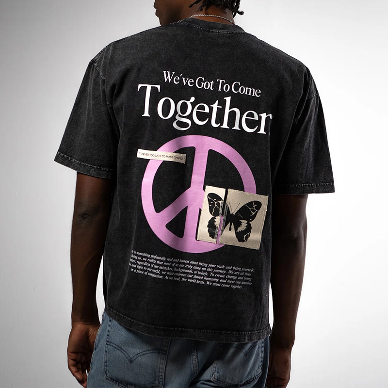Unisex We've Got To Come Together Print Acid Washed T-shirt