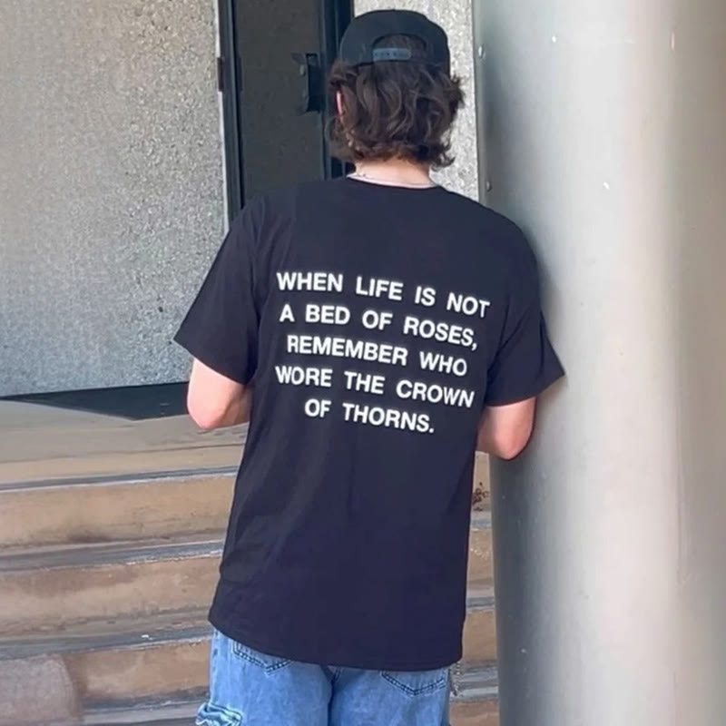 Unisex When Life Is Not A Bed Of Roses, Remember Who Wore The Crown Of Thorns Print T-shirt