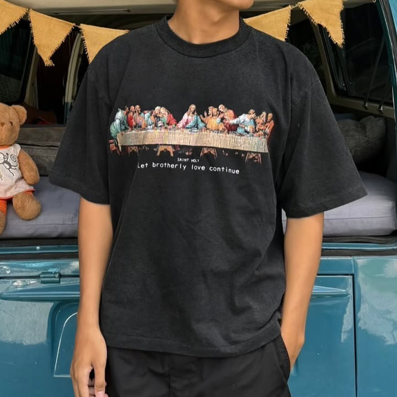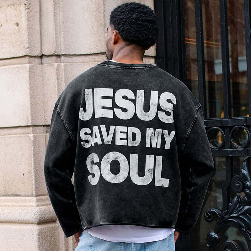 Unisex Jesus Saved My Soul Print Acid Washed Long Sleeve T-shirt