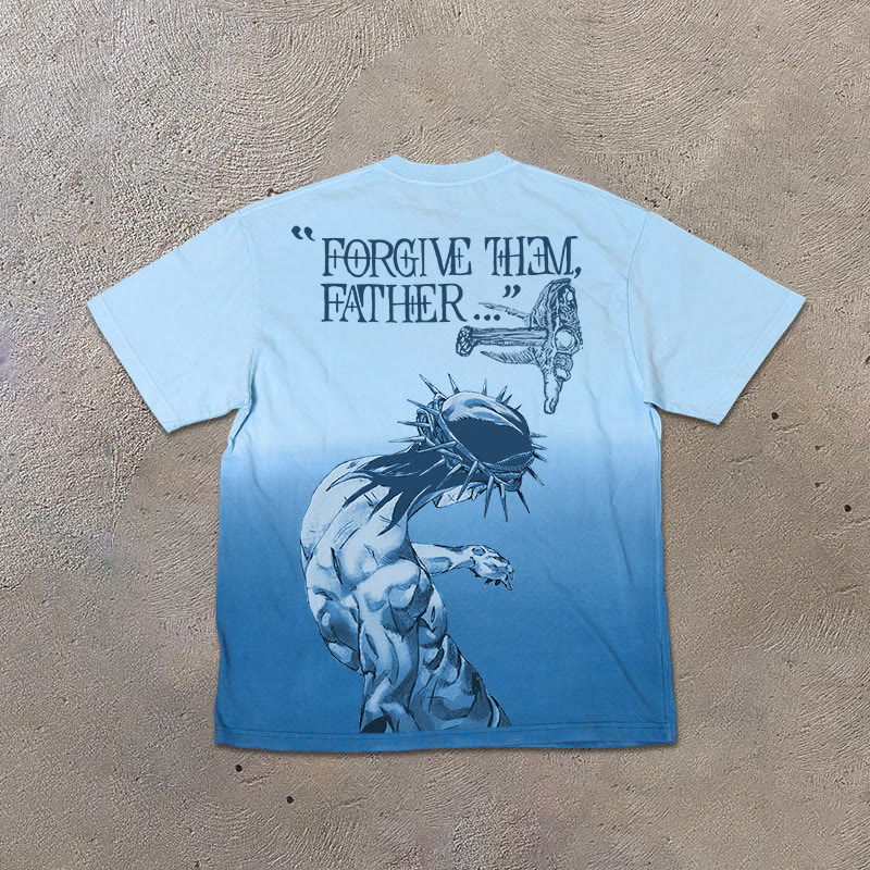 Unisex Forgive Them,Father Print Ombre Acid Washed T-shirt