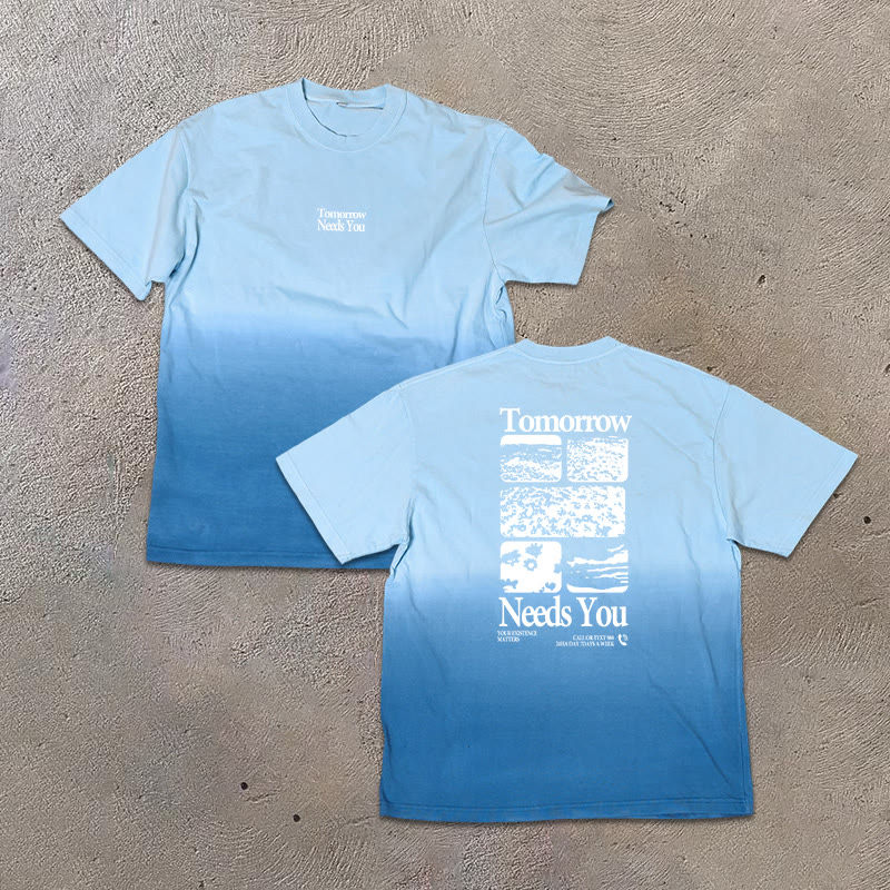 Unisex Tomorrow Needs You Print Ombre Acid Washed T-shirt