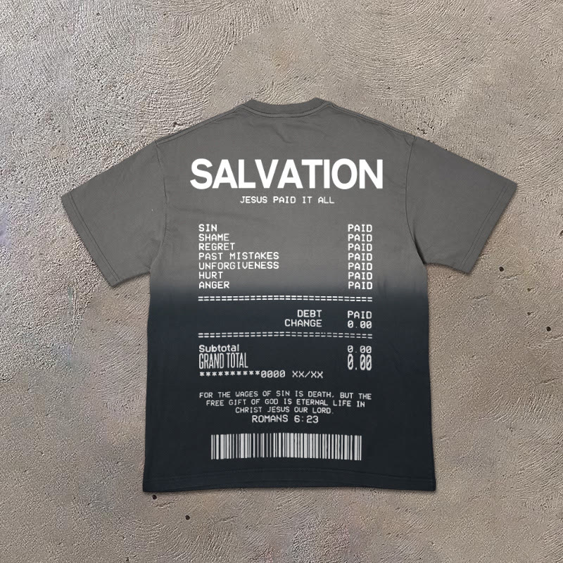 Unisex Jesus Paid It All Salvation Receipt Print Ombre Acid Washed T-shirt
