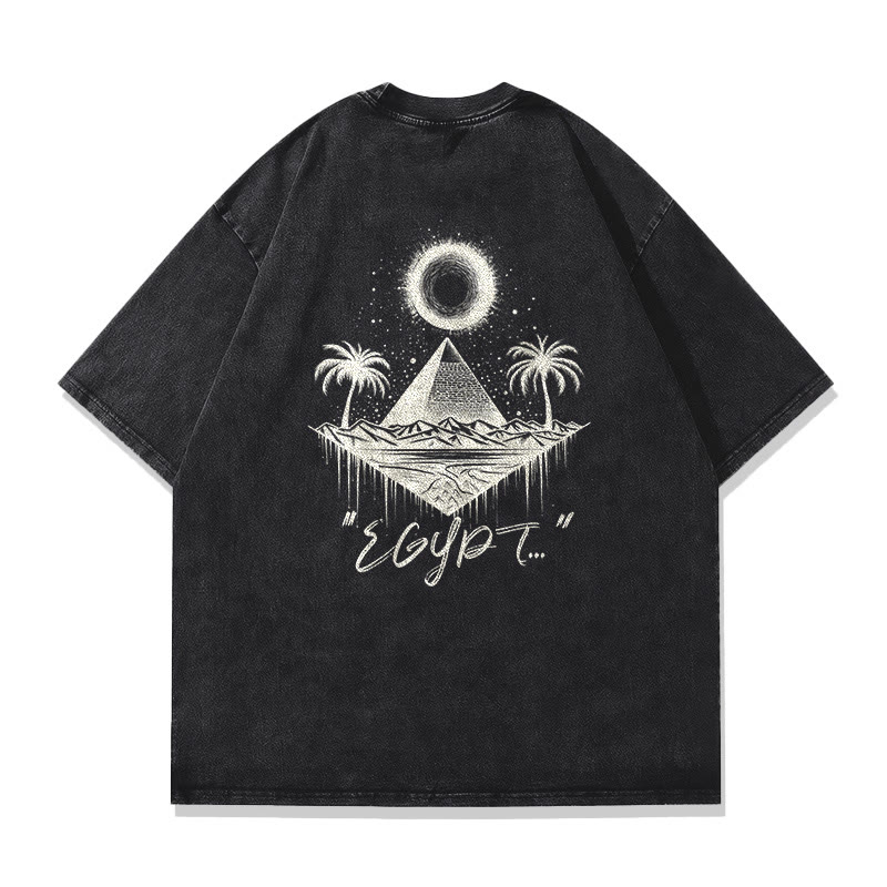 Unisex EGYPT.. Pyramid Sun Pattern Print Wash T-shirt