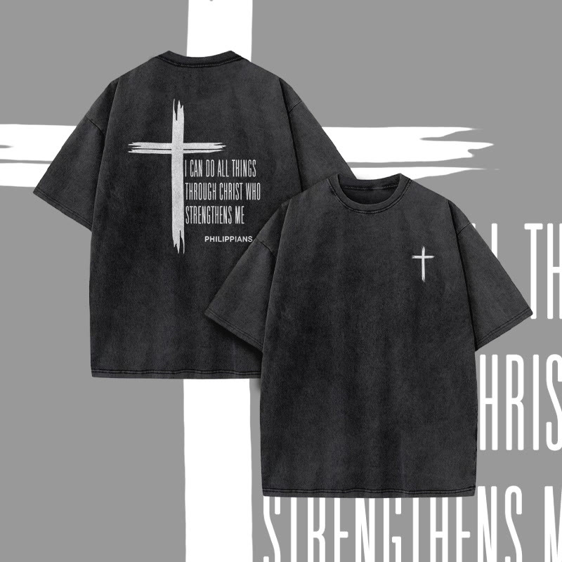 Unisex Philippians 4:13 Print Acid Washed T-shirt