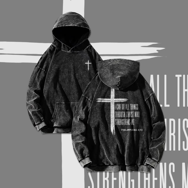 Unisex Philippians 4:13 Printed Washed Hoodie